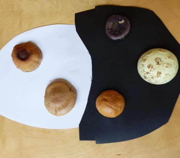 En bonus: une fois obtenu vos empreintes de champignons, couvrez-les d’une nouvelle feuille, et laissez-les sécher entre deux livres épais quelques jours. Une fois secs vous pouvez décorer et vernir délicatement pour les conserver.