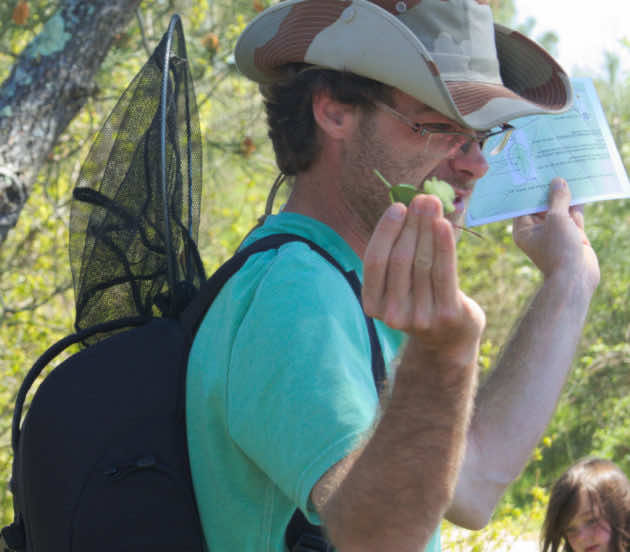Chapeau d’aventurier, épuisette dans le dos et paire de jumelles au cou, Alexandre explique aux enfants l’intitulé de la visite :